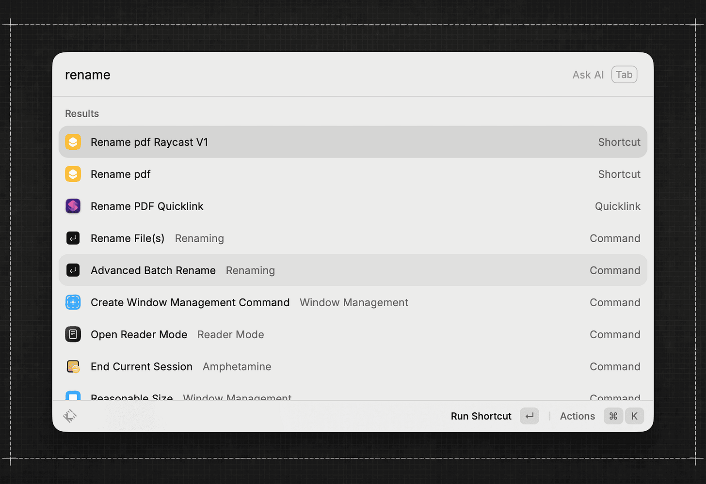 For someone who already uses Raycast as a command centre for the Mac, this feels much more natural than right-click menus.