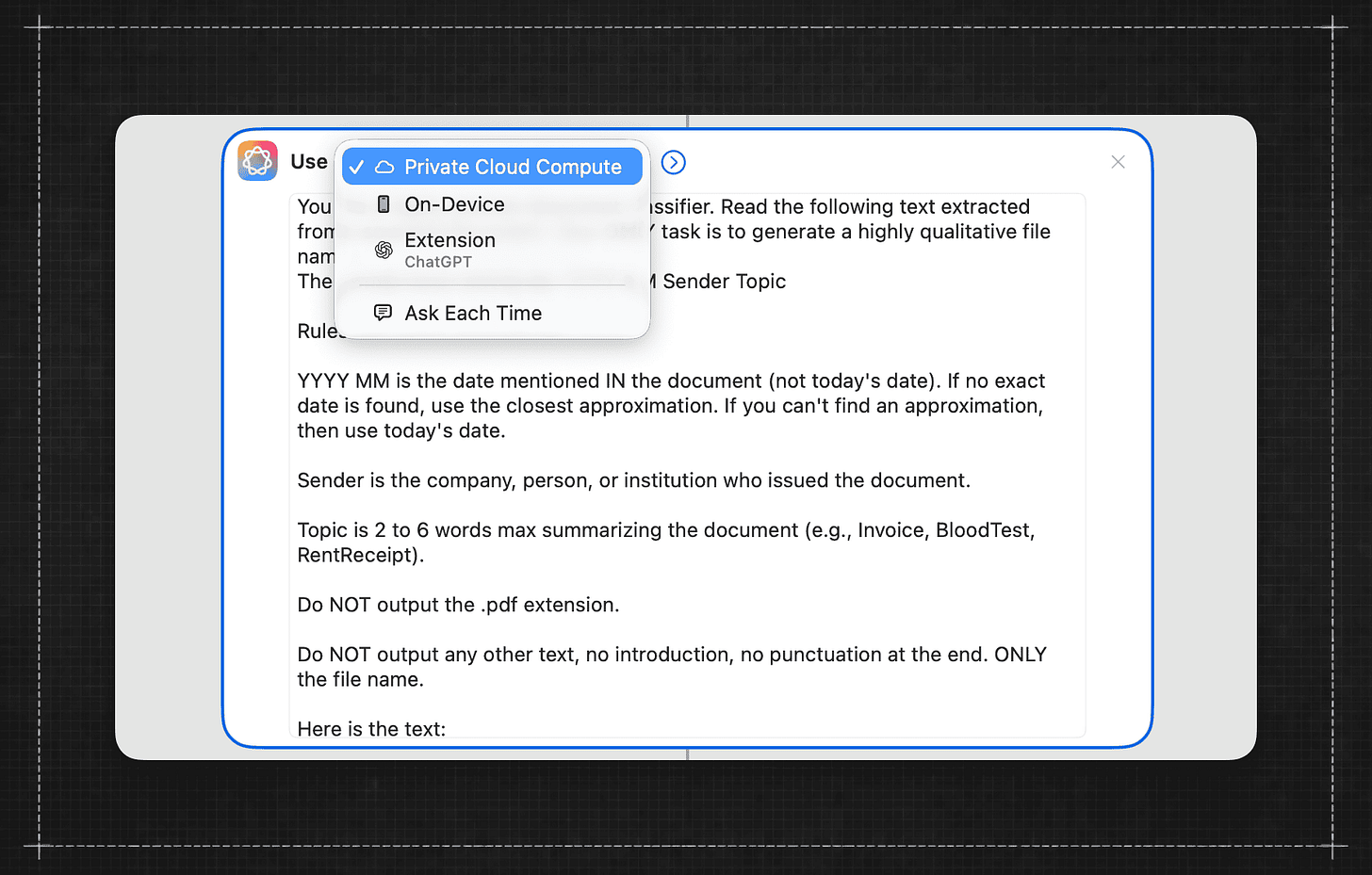 Using Apple Shortcuts and Apple Intelligence, you can build this workflow yourself in a few minutes. It runs directly on your Mac, can work entirely locally, and it’s reliable.